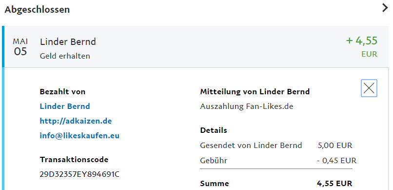 Insgesamt gezahlt: € 106160.21