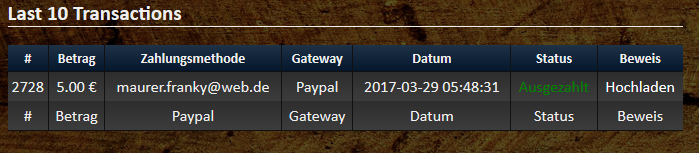 Payment Proofs - Hochladen