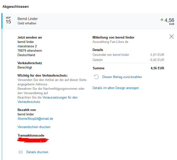 Insgesamt gezahlt: € 106160.21