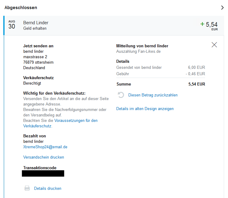 Insgesamt gezahlt: € 106160.21